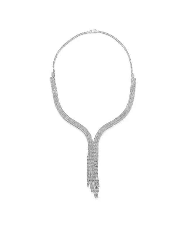 Bling Jewelry Art Deco-Inspired Y Fringe Tassel Statement Collar Necklace Cubic Zirconia Cz