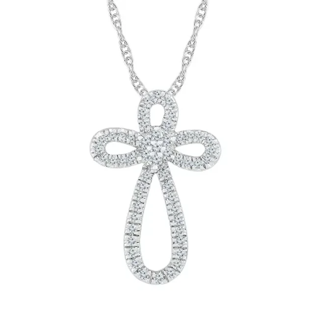 Womens 1 1/2 CT. T.W. Lab Grown White Diamond Sterling Silver Cross 18 Inch Pendant Necklace
