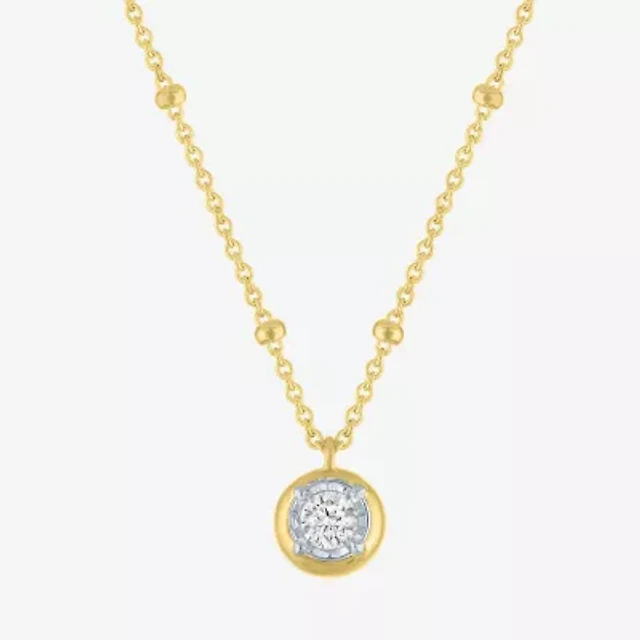Womens 1/10 CT. T.W. Lab Grown White Diamond 10K Gold Circle Sunburst 18 Inch Pendant Necklace