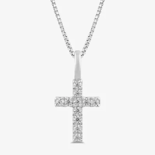 Womens 1 CT. T.W. Lab Grown White Diamond 14K Gold Over Silver Sterling Silver Cross 18 Inch Pendant Necklace