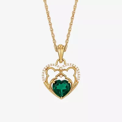 Womens 1/10 CT. T.W. Lab Grown White Diamond 14K Gold Over Silver Heart 18 1/2 Inch Pendant Necklace