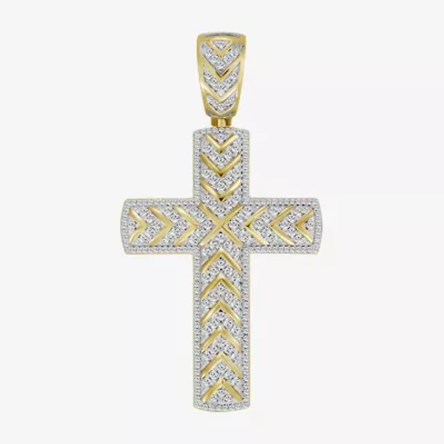 Mens 1 1/2 CT. T.W. Natural White Diamond 10K Gold Cross Pendant
