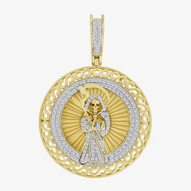 Santa Muerte Mens 1/3 CT. T.W. Natural White Diamond 10K Gold Pendant