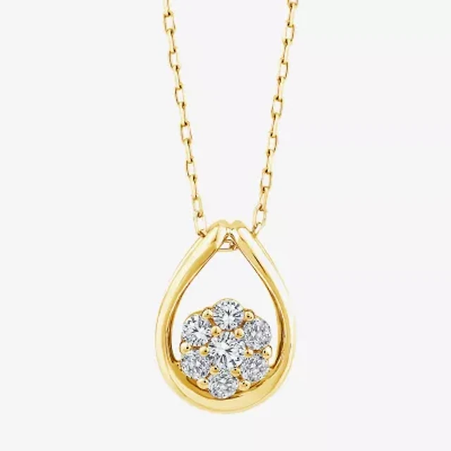 10K Gold 1/4 CT. T.W. Lab-Grown Diamond Cluster Heart Pendant - 16" + 2"