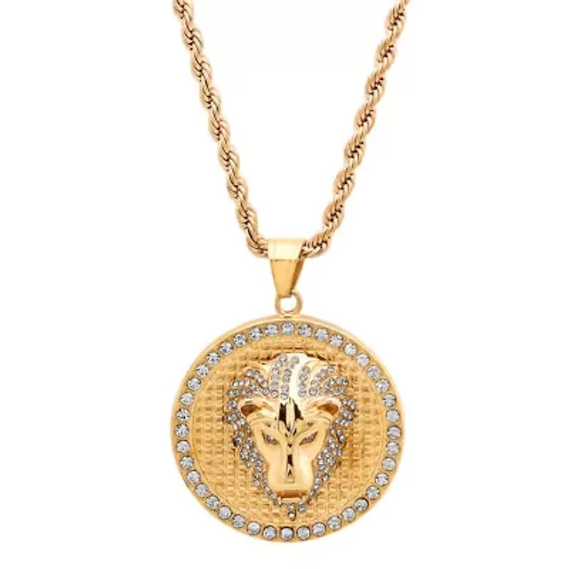 Men's 18k gold plated stainless steel lion head pendant on rope chain