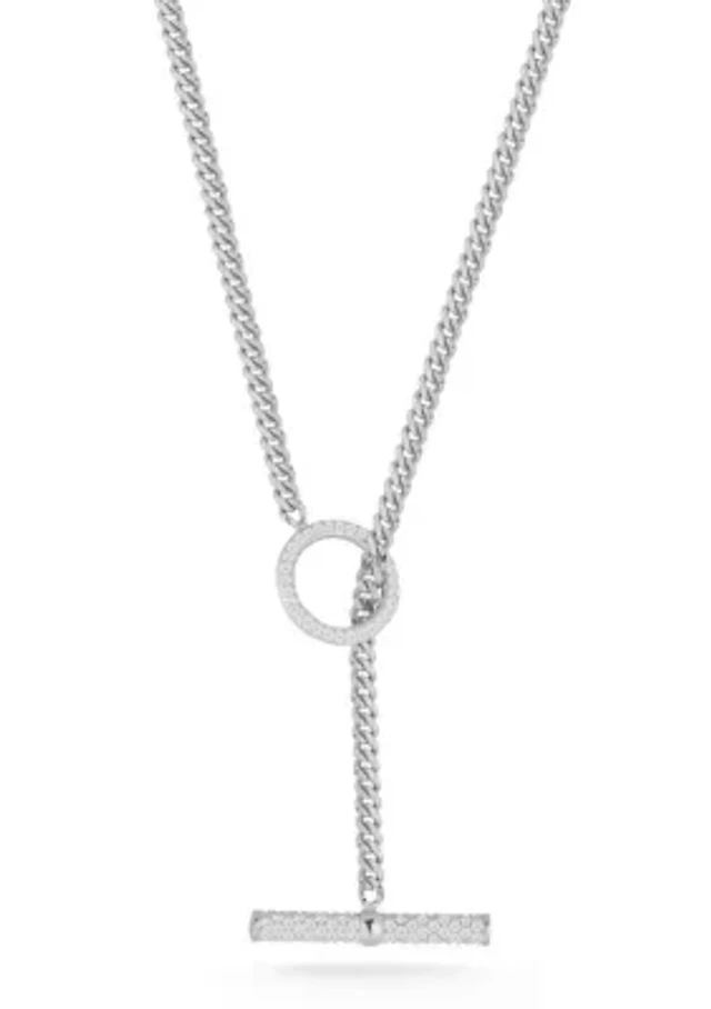 Sterling Silver Pave Toggle Curb Chain Choker