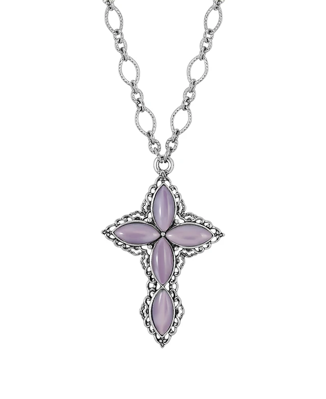 2028 Pewter Crystal Diamond Shaped Stones Cross 24" Necklace