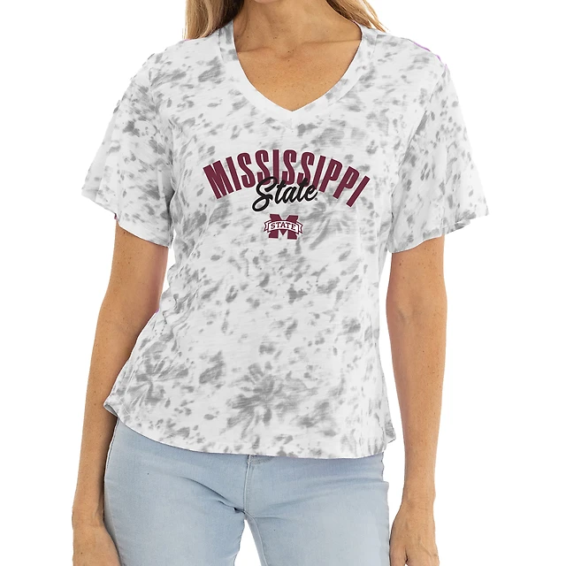 Women's White/Gray Mississippi State Bulldogs Faye Tie-Dye V-Neck T-Shirt