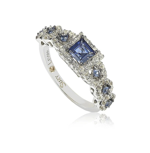 Suzy Levian Sterling Silver Sapphire & Created White 7 Stone Multi Level Band Ring