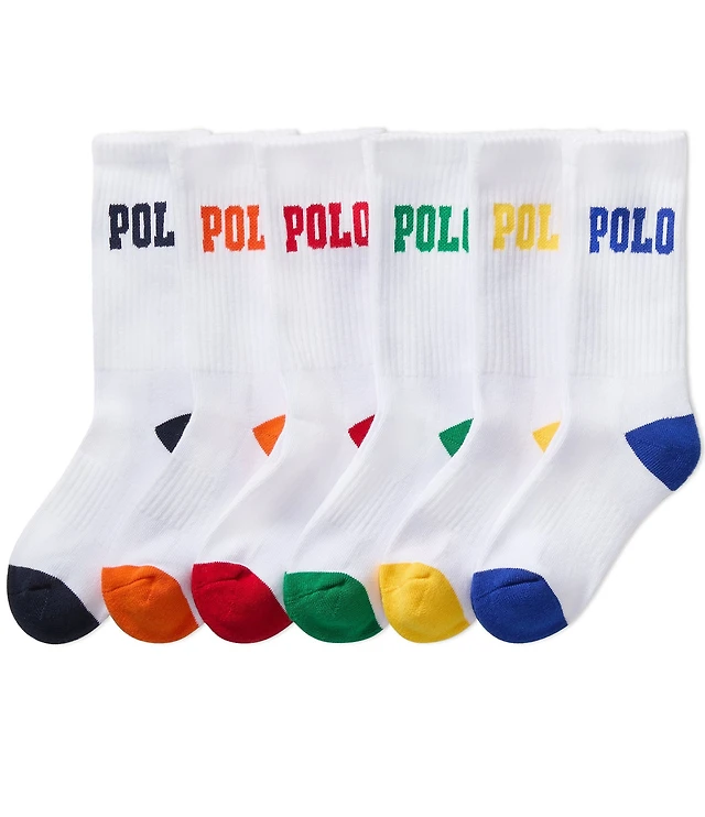Polo Ralph Lauren Little/Big Boys Performance Solid Cushioned Crew Socks 6-Pack