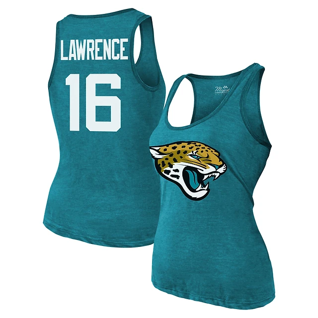 Majestic Threads Men's Trevor Lawrence Teal Jacksonville Jaguars Tri-Blend Player Name Number Tank Top T-Shirt