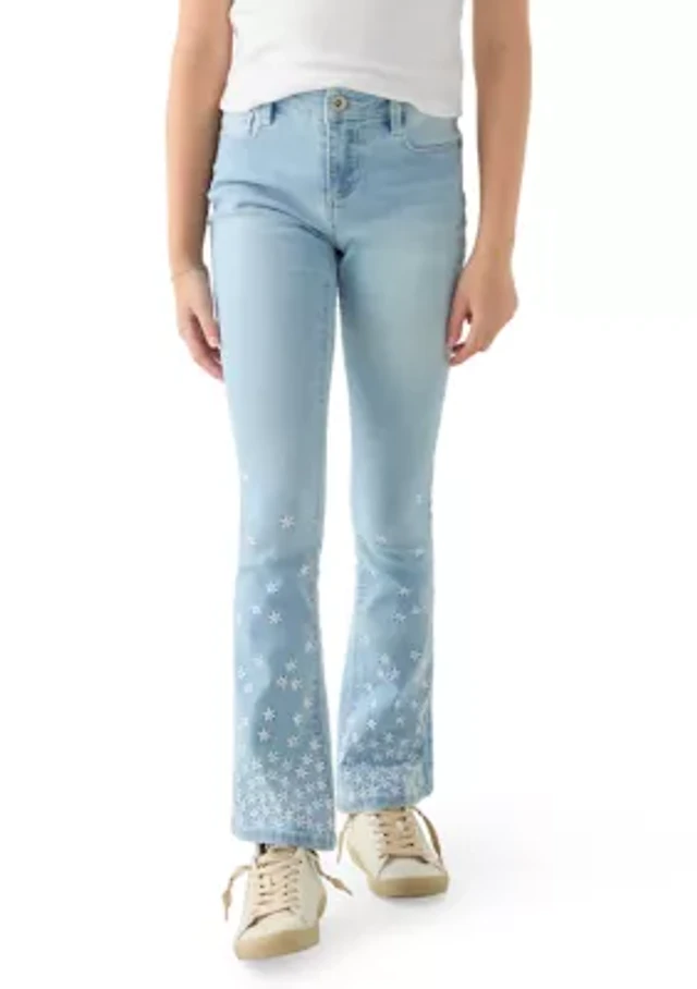 Girls 7-16 Flare Jeans with Mini Flower Embroidery