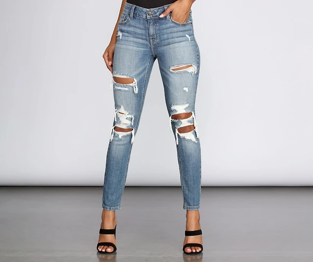Ultra Low-Rise Medium Wash Baggy Jeans
