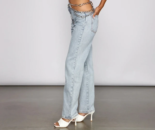 High-Rise Chic Chain Waist Boyfriend Jeans