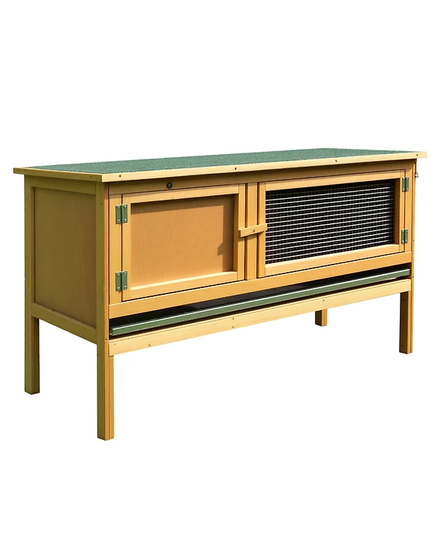 PawHut Wooden Rabbit Hutch Bunny Cage with Openable Waterproof Roof