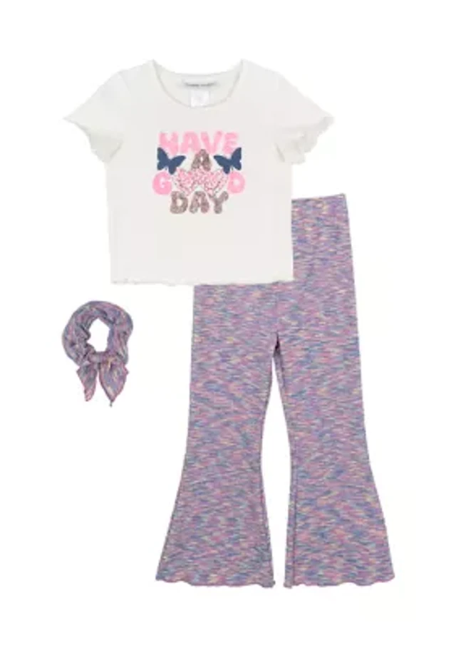 Girls 4-6x Jersey Knit Pants and Graphic T-Shirt Set with Scrunchie