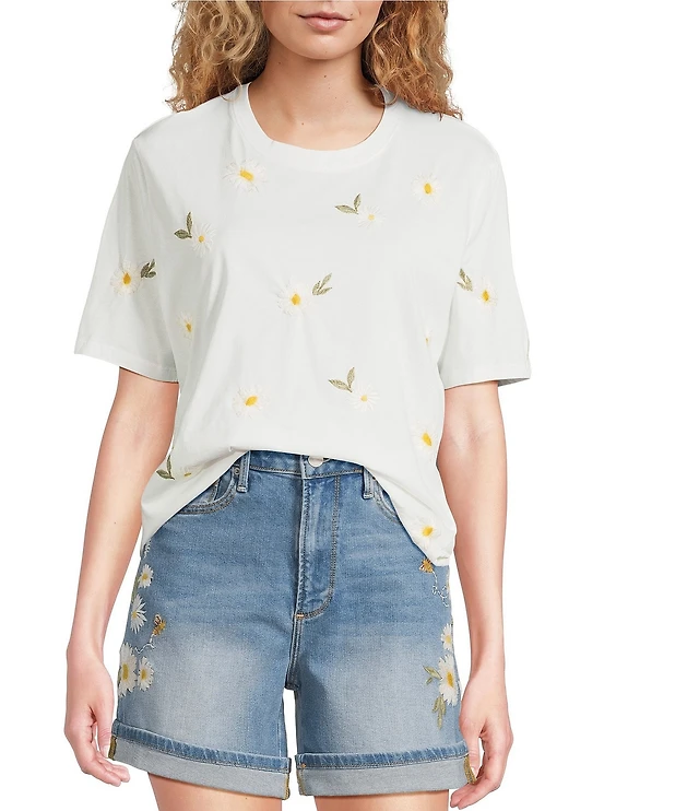 Driftwood Jersey Knit Daisy Print Crew Neck Short Sleeve Shirt