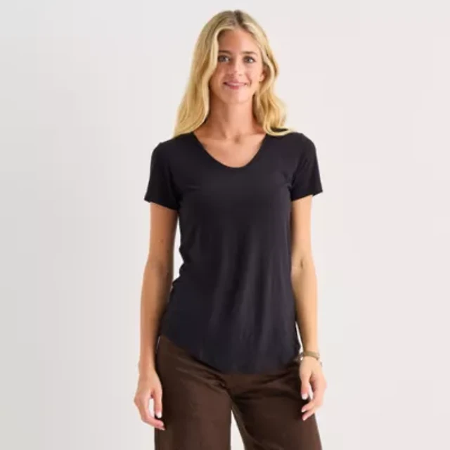 Xersion Everyday Womens Crew Neck Twist Back Short Sleeve T-Shirt