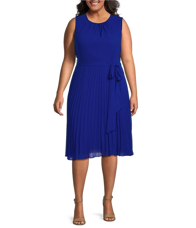 Jessica Howard Ruffle V-Neck Sleeveless Tie Waist Pleated Fit and Flare Dress