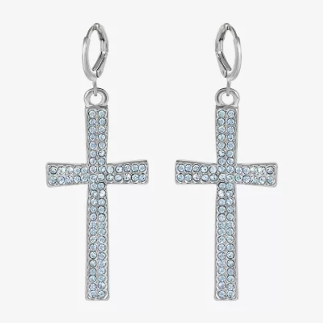 JS Jessica Simpson Gold Tone Womens Glass Simulated Pearl Cross Drop Earrings