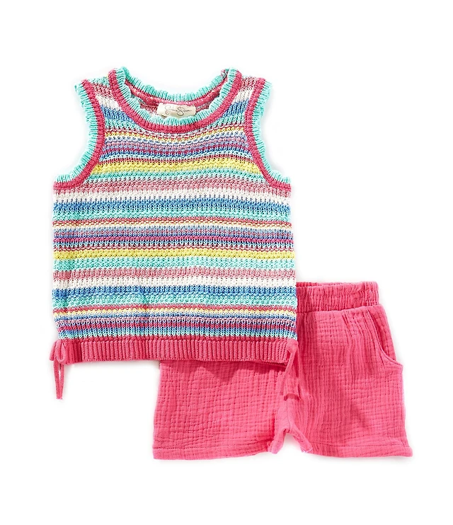 Jessica Simpson Baby Girls Sleeveless Striped Crocheted Tank Top & Matching Shorts Set