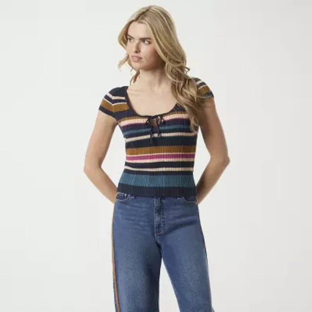 JS Jessica Simpson Womens Scoop Neck Short Sleeve Striped Pullover Sweater