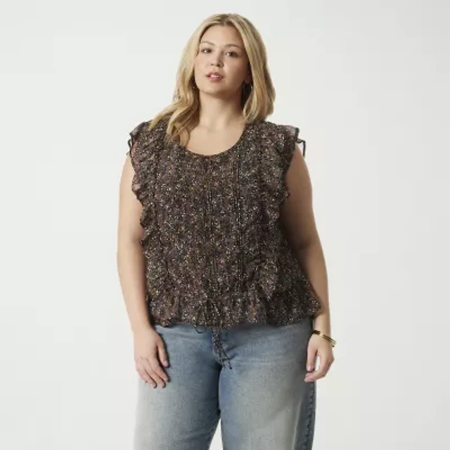 JS Jessica Simpson Chiffon Womens Plus U Neck Short Sleeve Blouse