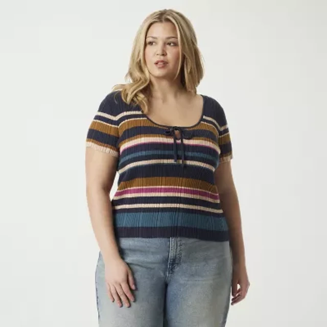 JS Jessica Simpson Plus Womens Scoop Neck Short Sleeve Striped Pullover Sweater
