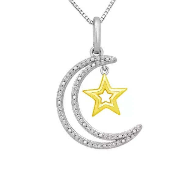 Womens Diamond Moon Star Pendant
