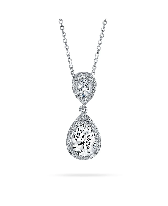 Bling Jewelry Pear Cubic Zirconia Cz Large Teardrop Solitaire Pendant Necklace Silver Plated Brass