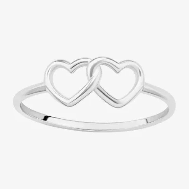 Silver Treasures Womens Sterling Heart Delicate Stackable Ring