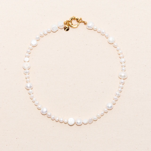 18K Gold Plated Freshwater Pearls Mix of Different Sizes - Nina Necklace 17" For Women