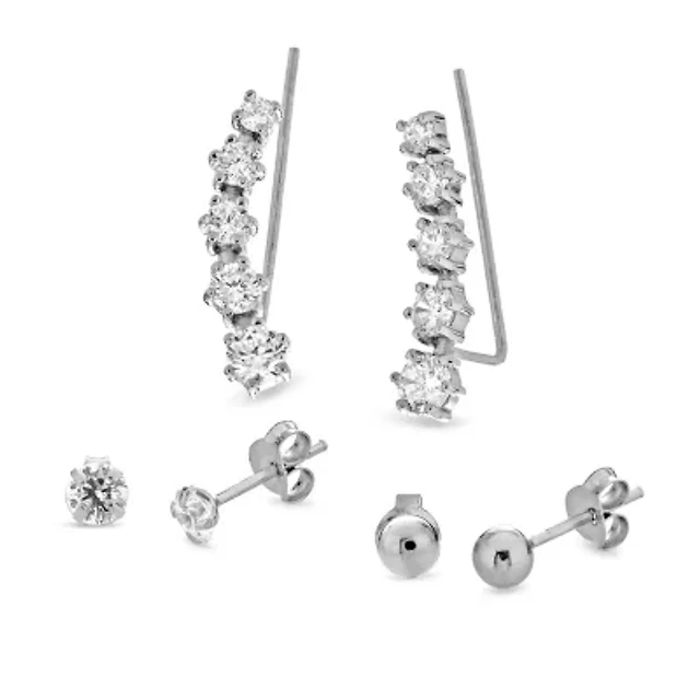 Womens White Crystal Sterling Silver Ball 6 Pair Earring Set