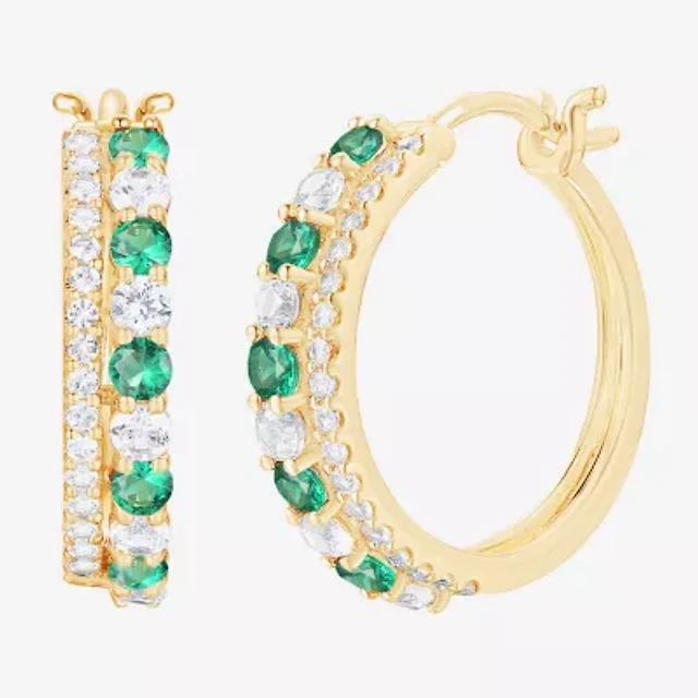 Yes, Please! Womens Lab Created White Sapphire Sterling Silver 25mm Hoop Earrings