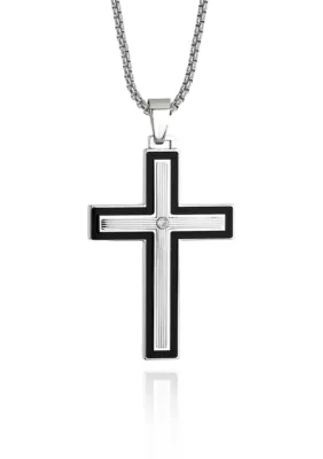 Black Oxidized Stainless Steel Cross Pendant Necklace