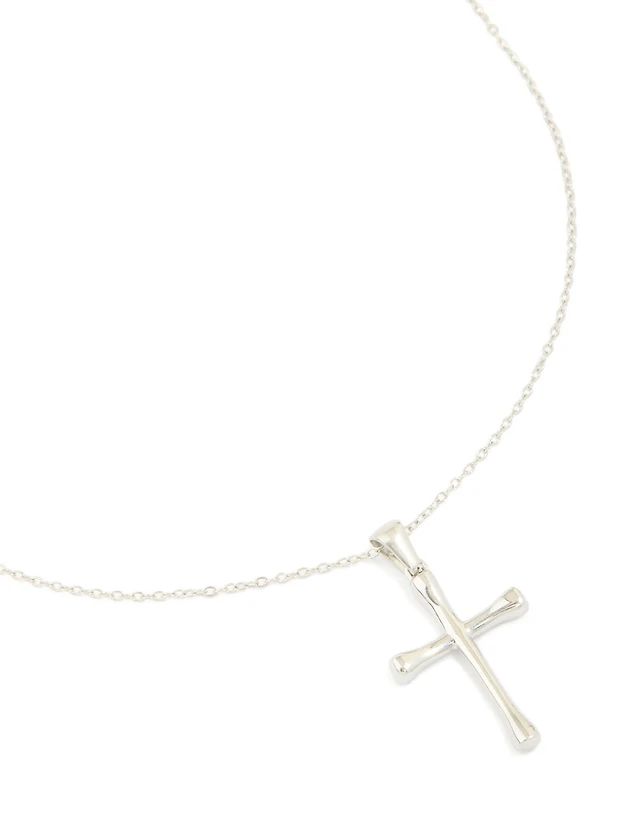 Sterling Silver Hollow Diamond-Cut Cross Charm