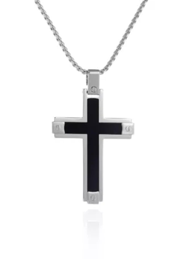 .16CTW Diamond Stainless Steel Black Finish Cross Pendant