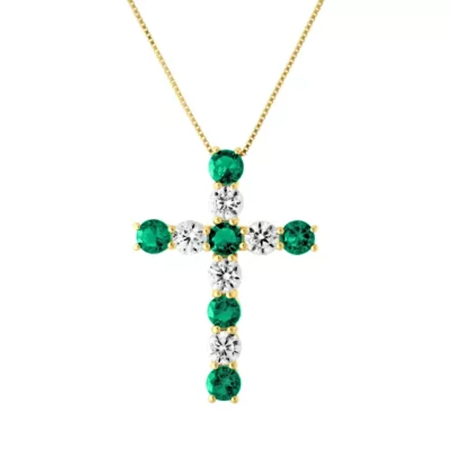Gemstone and Diamond Cross Pendant in Rhodium-plated Sterling Silver