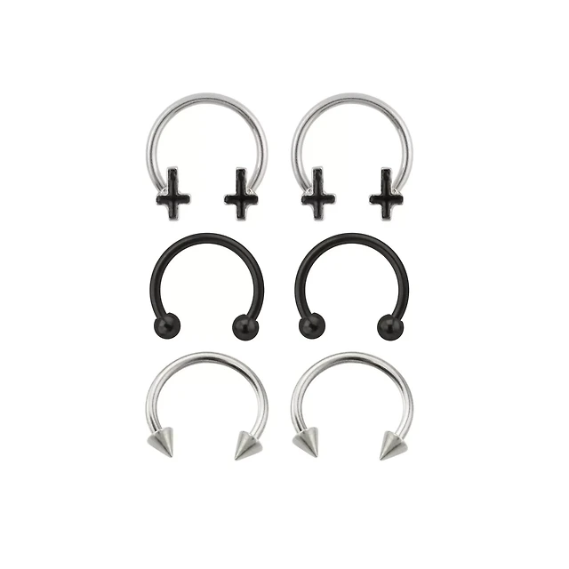 Multi-Pack Black Inverted Cross Horseshoe Rings 3 Pairs - 16 Gauge