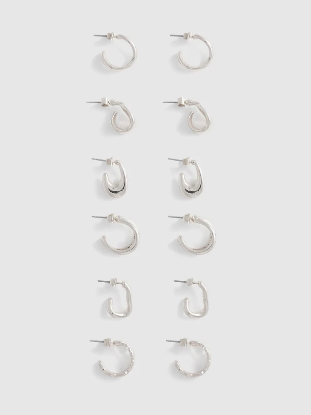 6pk Molten Metal Hoop Earrings