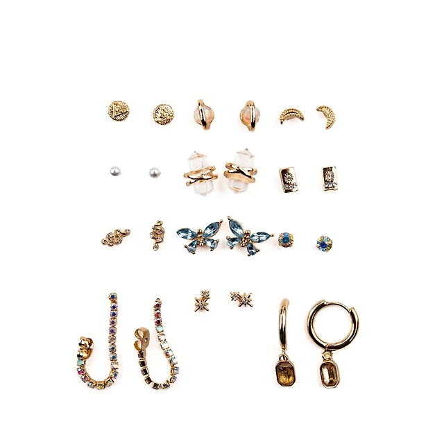 Multi-Pack Coquette Angel Stud and Hoop Earrings - 9 Pair