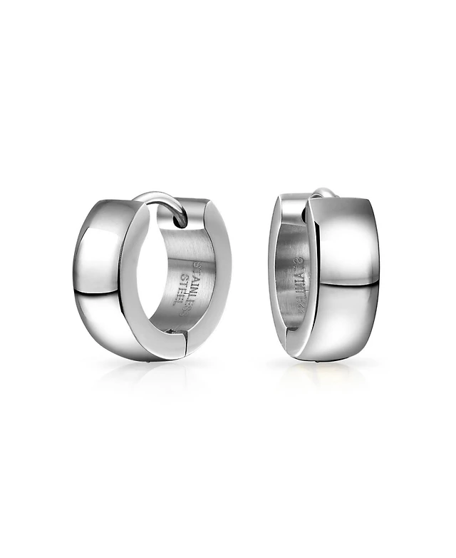 Bling Jewelry Set of 2 Simple Basic Polished Huggie Hoop Earrings Silver Gold Plated Steel