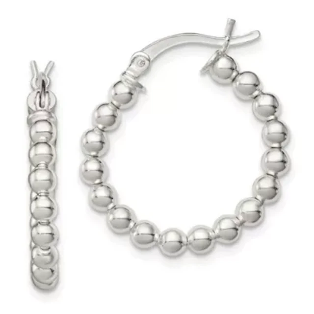Sterling Silver Polished Beaded Hoop Earrings