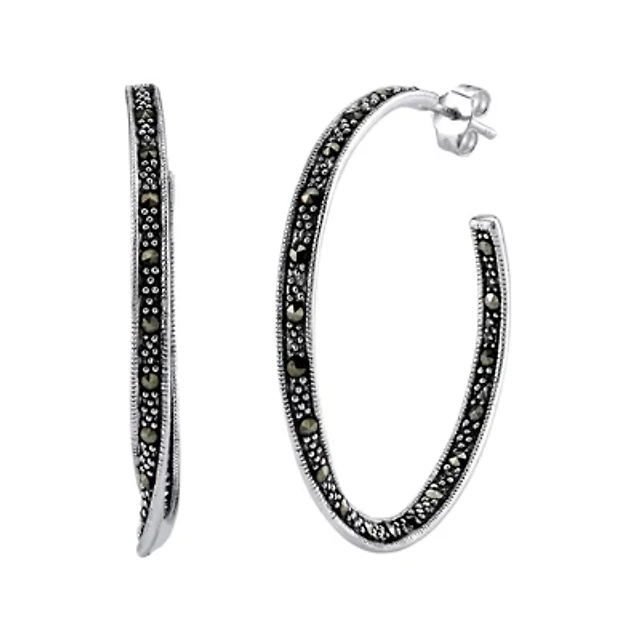 3.3 ct. t.w. Black Onyx Hoop Earrings in Sterling Silver