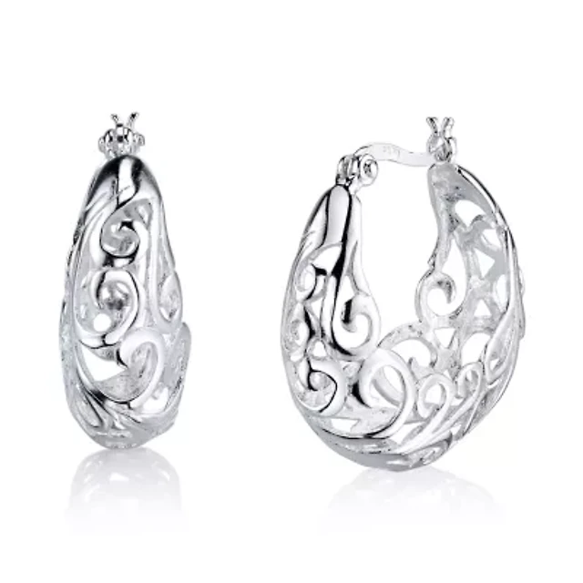 Silver Tone 30 Millimeter Oval Hoop Earrings
