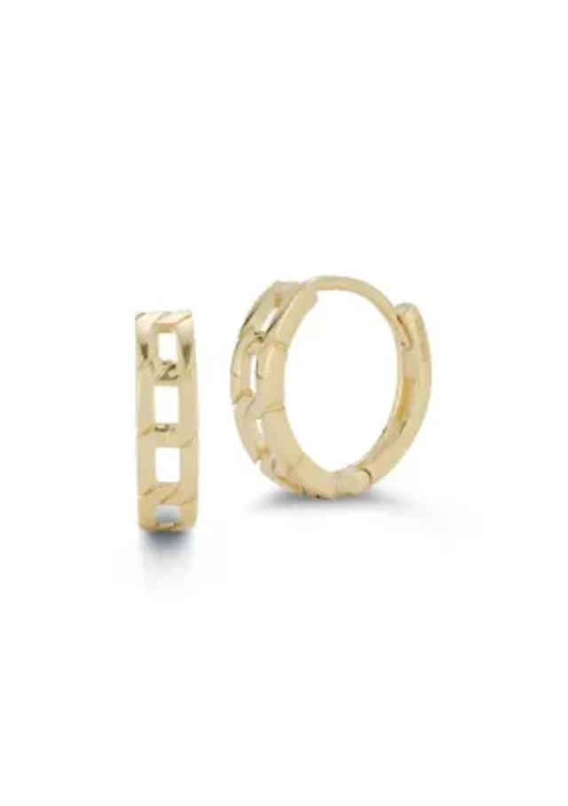 14K Gold Square Curb Chain Huggie Hoop Earrings