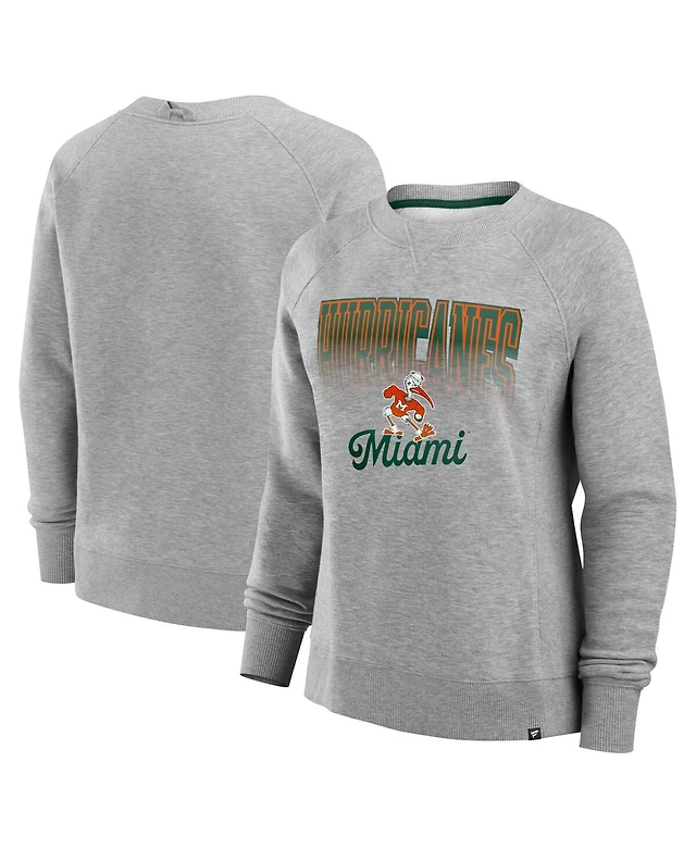 Fanatics Women's Heather Gray Miami Hurricanes Training Camp Hit Hard Fleece Pullover Sweatshirt