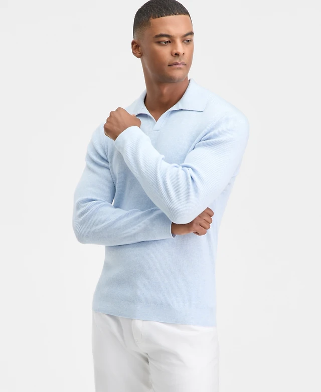 Roundtree & Yorke Short Sleeve Solid Textured Johnny Collar Knit Shirt