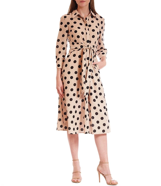 Julia Jordan Polka Dot 3/4 Sleeve Belted Midi Shirt Dress