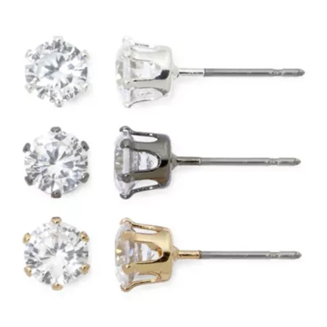 Mixit Womens Cubic Zirconia Hypoallergenic 3 Pair Earring Set